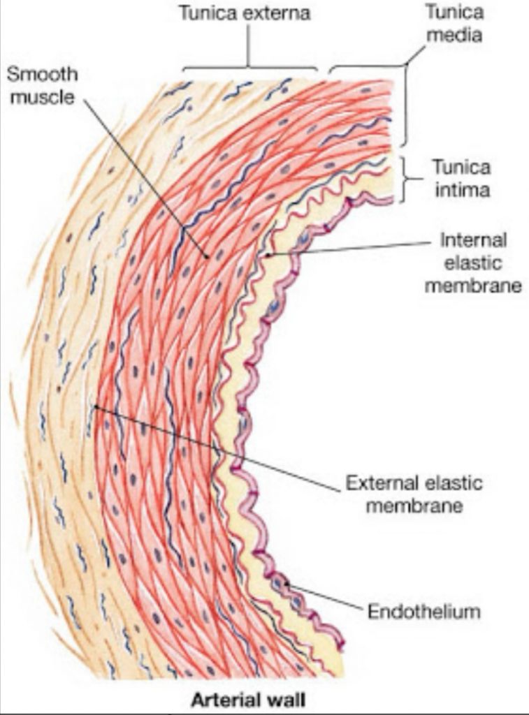 מבנה של דופן עורק גמיש. שלוש שכבות המכונות גלימות: הגלימה הפנימית, הגלימה האמצעית והגלימה החיצונית מרכיבות, אנטומית את דופן הצנרת.