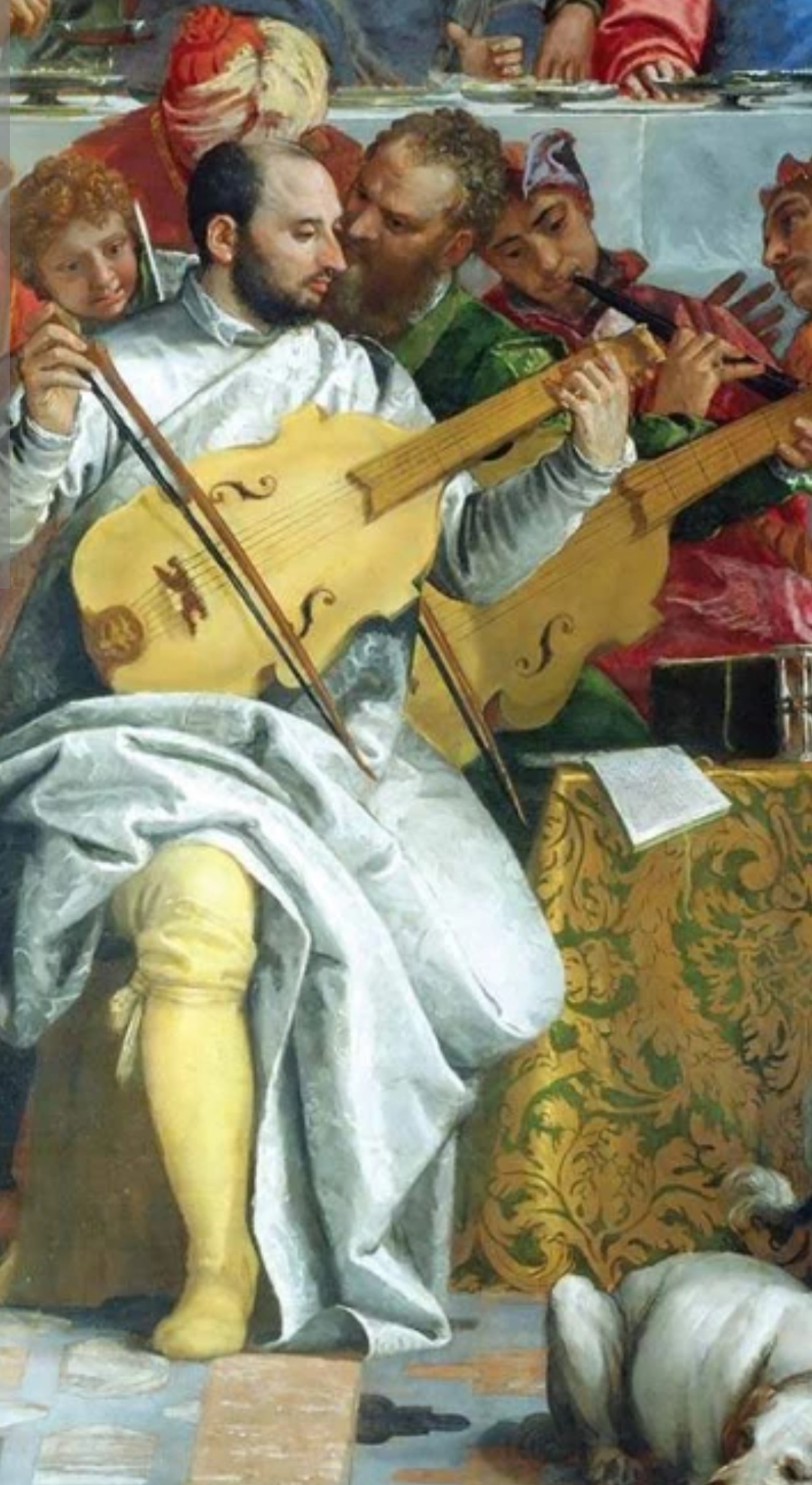 החתונה בקנה" (1563) של פאולו ורונזה היא דיוקן עצמי של האמן עצמו. אסכולה ונציאנית, ןצל יש צבע, למשל כחול.