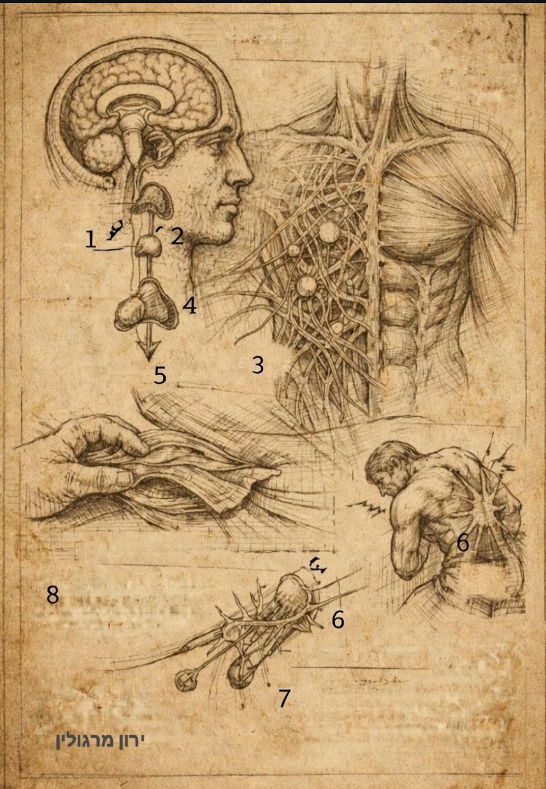 2. **חוט השדרה** – מעבר אותות כאב ועצבוב ראשוני מהגוף אל המוח.