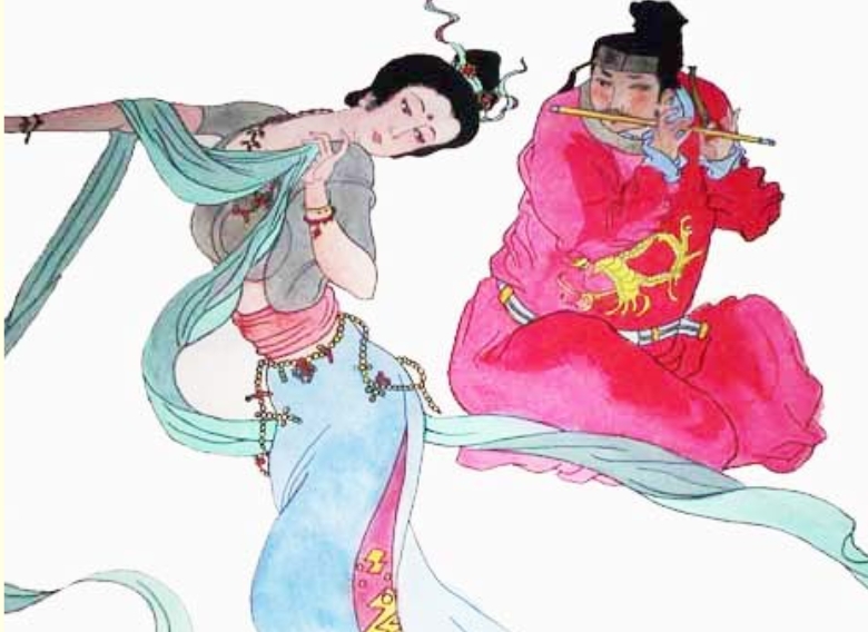 דמויות מרכזיות: הקיסר לי שימין (מייסד הטאנג) והקיסר לי לונג'י, שחיבר את יצירת המופת "נישהנגיאי" (שיר מעיל נוצות הקשת) – ריקוד עמוק ועצוב בהשראת פילגשו יאנג גוויפיי, המשלב תנועה, מוזיקה ורגשות נצחיים.