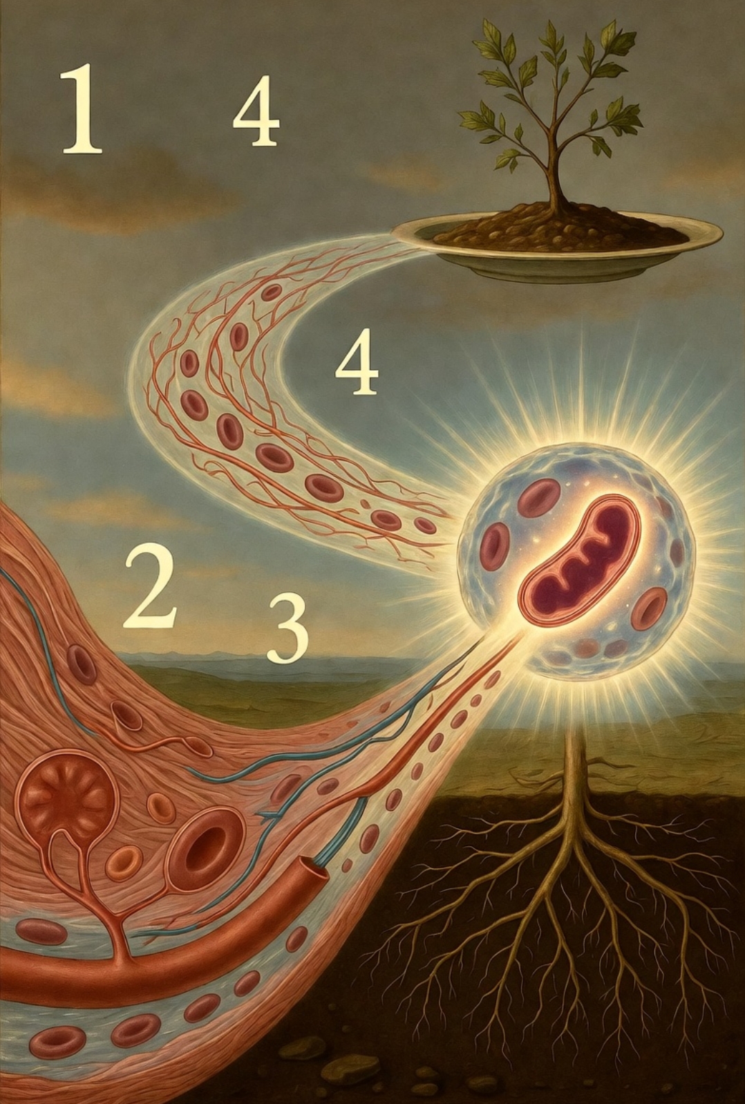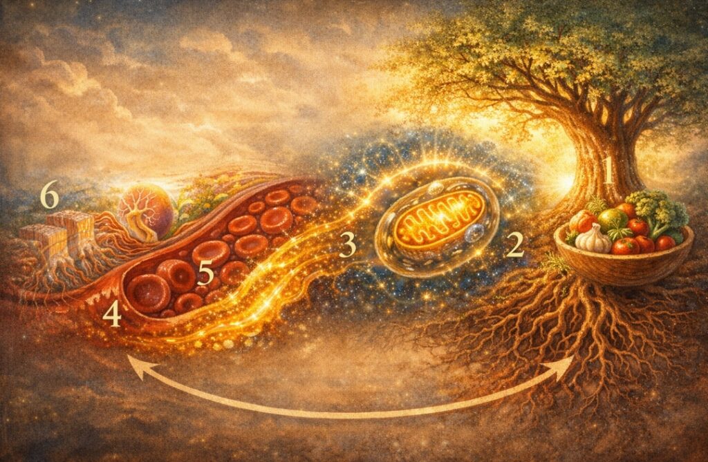 תיקון רקמה ← בניית דם ← גלוטתיון ← רדוקס ← מיטוכונדריה ← תזונה.