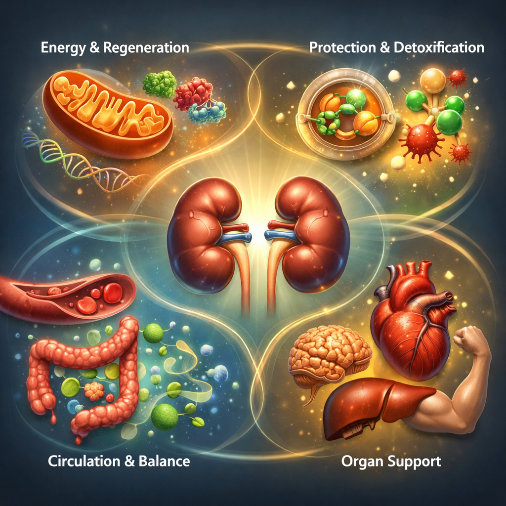 Die Kombination aus konventioneller Behandlung und der Unterstützung körpereigener biologischer Mechanismen kann dazu beitragen, klinische Ergebnisse zu verbessern und neue Perspektiven im Umgang mit chronischen Erkrankungen zu eröffnen — einschließlich Erkrankungen von Herz, Leber, Lunge, Verdauungssystem, Gehirn und Nieren.