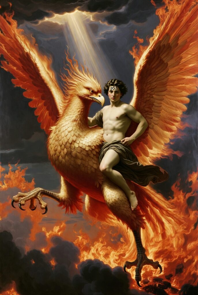 בתרבויות רבות תיארו את הרגע הזה דרך דימוי חזק אחד: עוףהחול כזהו גם חלבון הפועל בגופנו בשם p53, נושא חלקד' של רצף המאמרים על כוחות ההחלמה וצירי ההחלמה הביולוגיים שפועלים בגופנו [מקור].